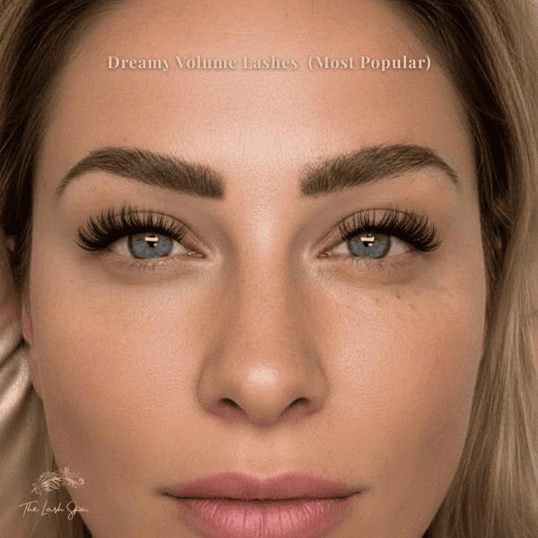 Our Dreamy Volume set is our most popular and most recommended lash style, fully customised to suit your eye shape and natural lashes. It creates a soft, darker “eyeliner effect” with added fullness and length, while remaining balanced and wearable.