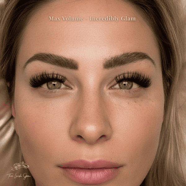 Our Max Volume lashes are our fullest, most dramatic set, designed to create intense density and a bold, high-impact finish with thick, dark lashes from root to tip.